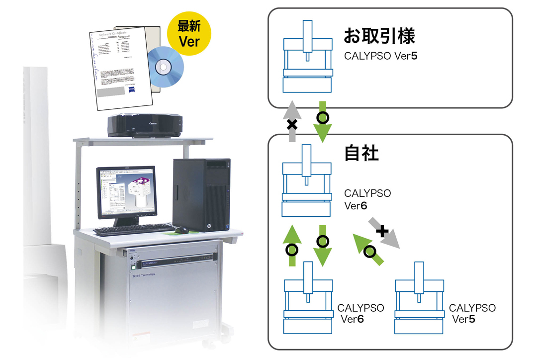 お客様が複数台運用しているケース、お取引様と測定プランを共有されるケース、色々なケースがありますが、安心サポート契約いただく事で、常に最新のCALYPSO環境となりますので新旧問わず互換性が保てます。